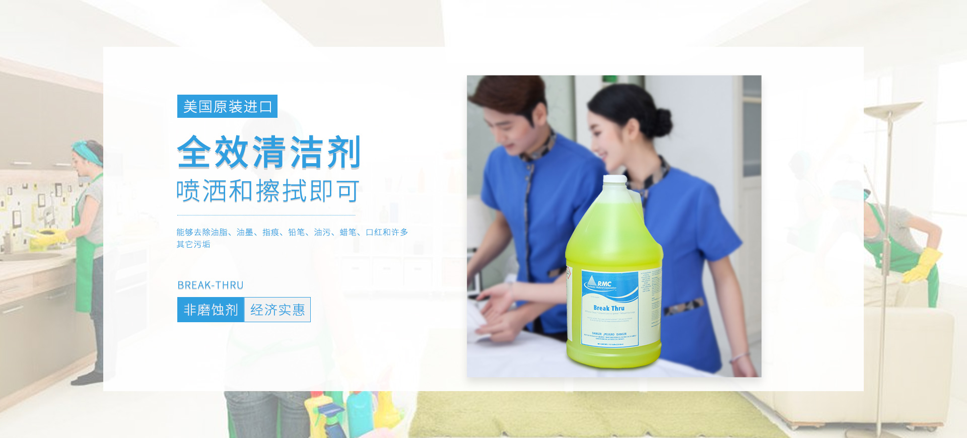 新朗環(huán)境自2015年起與美國具百年歷史的跨國企業(yè)RMC(Rochester Midland Corporation)合作, 進(jìn)口 RMC用于機械制造、交通運輸、航天航空、石油化工、食品禽肉乳制品加工等工業(yè)生產(chǎn)制造行業(yè)的專業(yè)清洗、滅菌系列產(chǎn)品,以及酒店、CBD大廈、學(xué)校(包括幼稚園)、醫(yī)療機構(gòu)、百貨商場、養(yǎng)殖業(yè)、餐飲業(yè)等商用行業(yè)清潔、消毒系列產(chǎn)品,還有專用于各個行業(yè)單位“廁所革命”的公共衛(wèi)生間根源除味第5代SANOR?衛(wèi)生間自動滴管系統(tǒng)、第6代百屋潔SIOGIENIUS?電子控制衛(wèi)生間自動滴注系統(tǒng)等系列產(chǎn)品項目。
